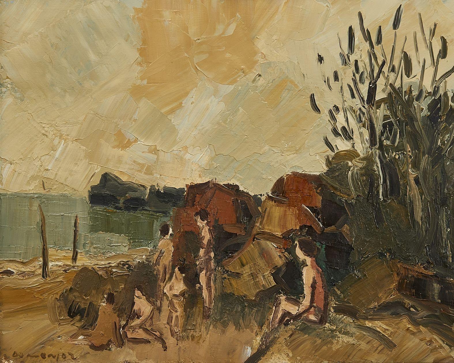 Baigneurs au bord de la mer, huile sur toile, signée, 30x40 cm