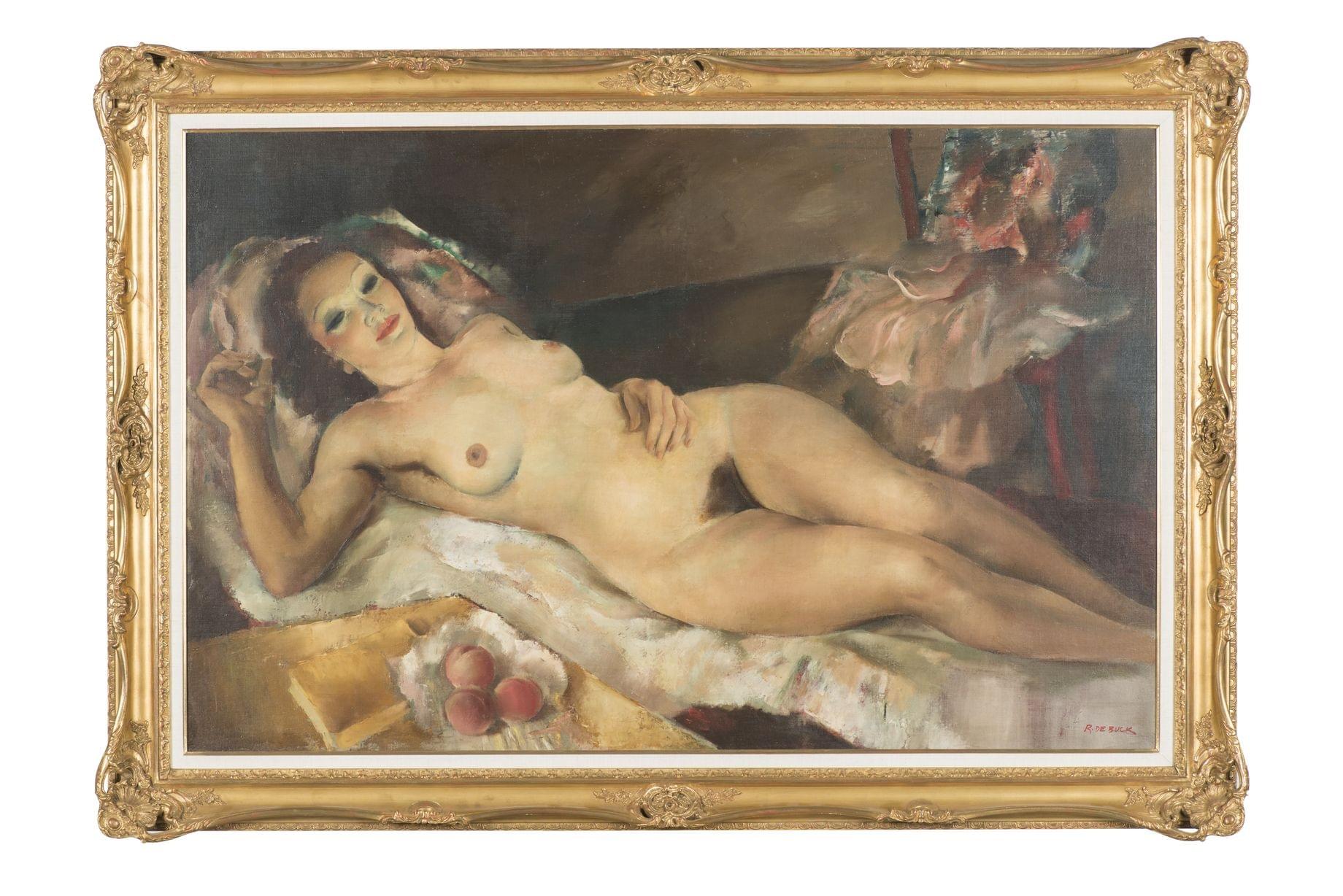 Nu allongé, huile sur toile, signée, 53x64 cm