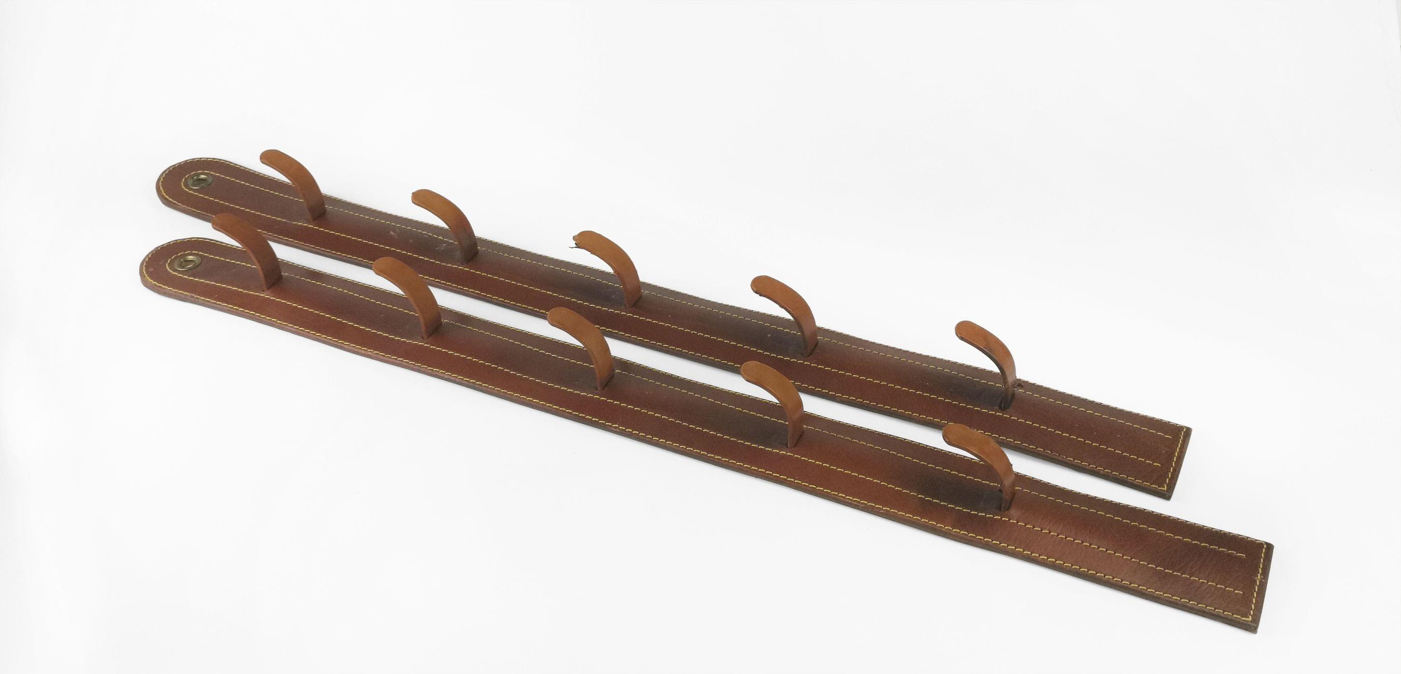 Cuir piqué sellier, cinq crochets, H 88 cm
