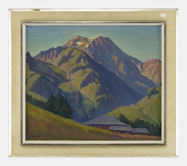 La Villette et la Hochmatt, huile sur pavatex, signée, 24,5x34 c...