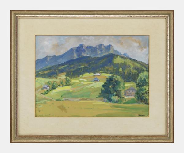 Chalet de Mr. Schaller, gouache sur papier, signée, 26,5x37,5 cm