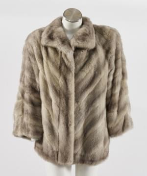 Fourrure de vison gris clair, intérieur en tissu gris, fermeture...
