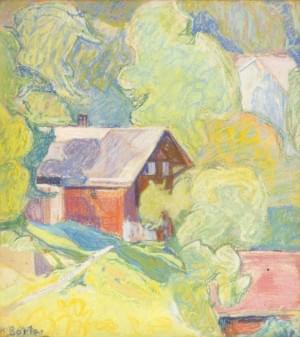 Paysage de montagne, aquarelle sur papier, monogrammée, 37x40 cm