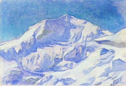 Montagne enneigée, pastel sur toile, signée, 42x61 cm
