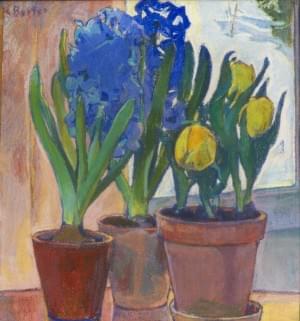 Tulipes et jacinthes, pastel sur toile signé, 37,5x35 cm