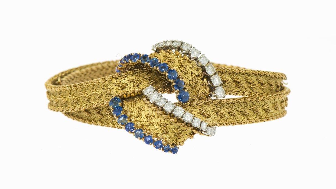282. Régner Paris, bracelet nœud serti de saphirs et diamants (env 1,2 ct)