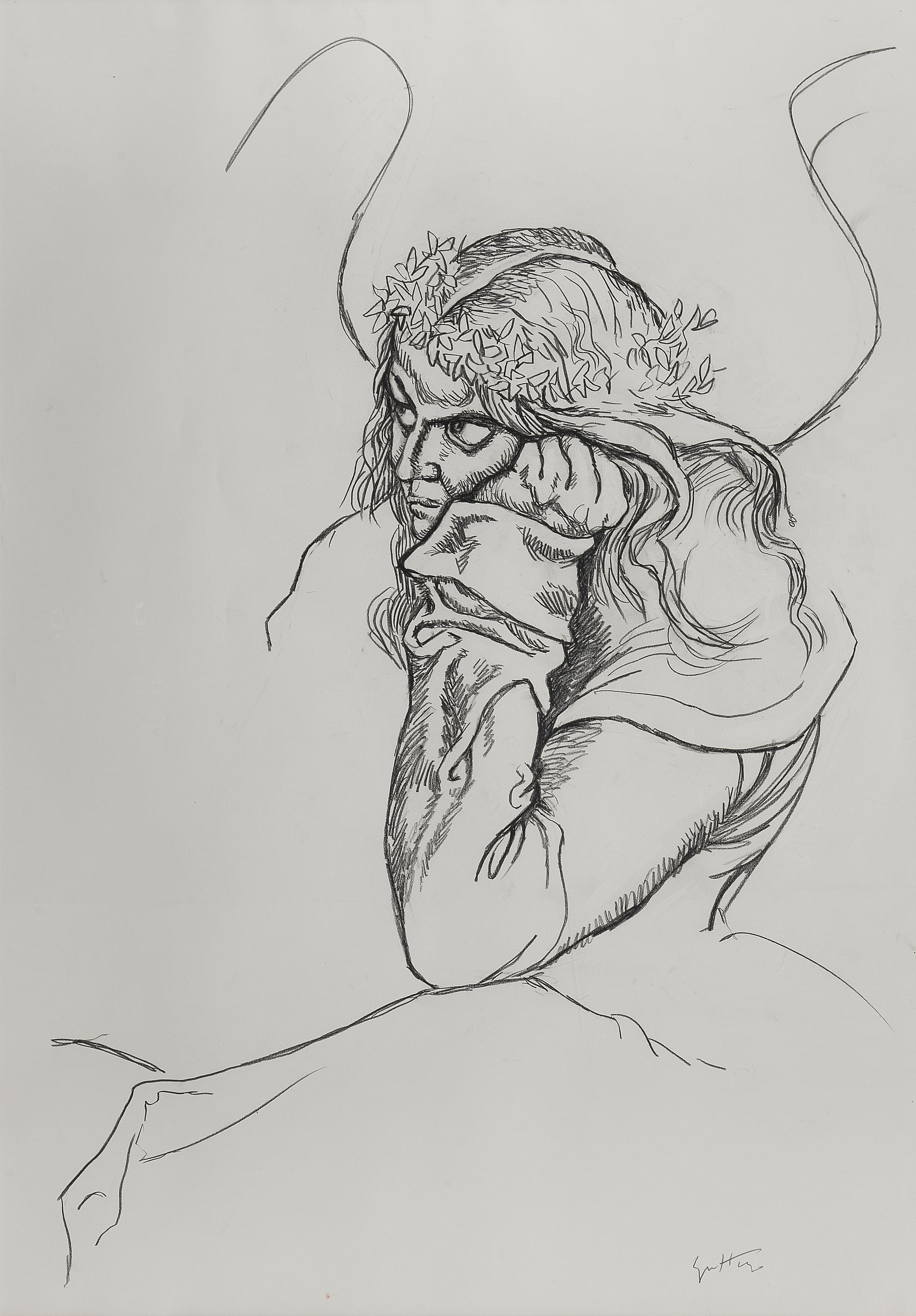 Mélancolie d'après Dürer, crayon gras sur papier, signé, 10x70 cm