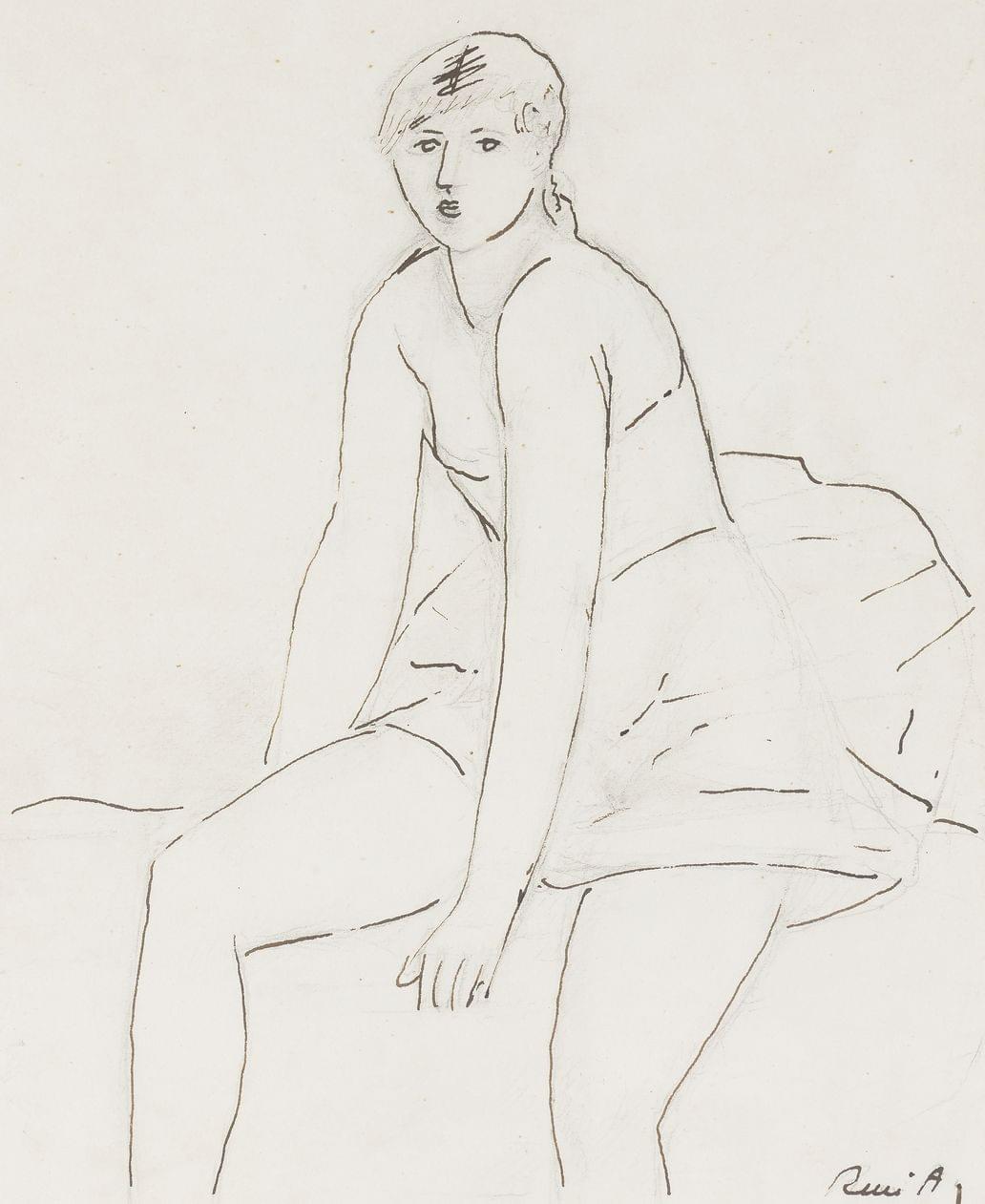Etude de jeune femme, plume et mine de plomb sur papier, signée, 29x24 cm