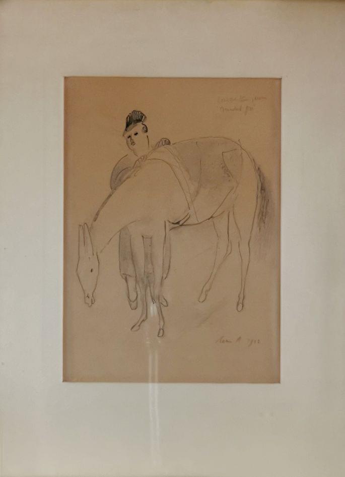 Jeune cavalière, crayon, signé et daté 1953, 21x14 cm