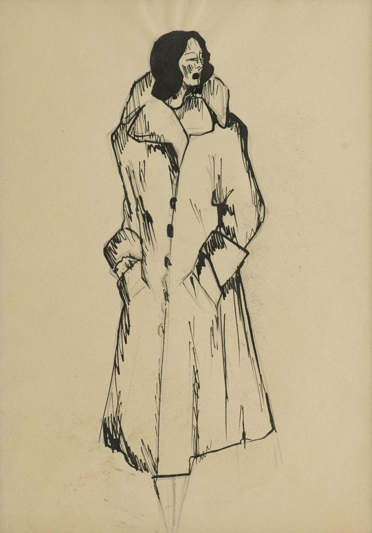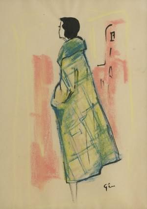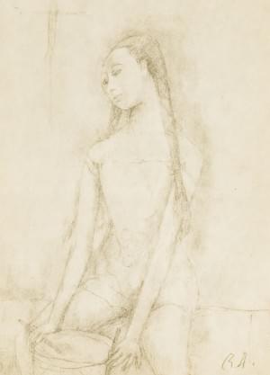Jeune femme au tambour, mine de plomb sur papier monogrammée , 3...