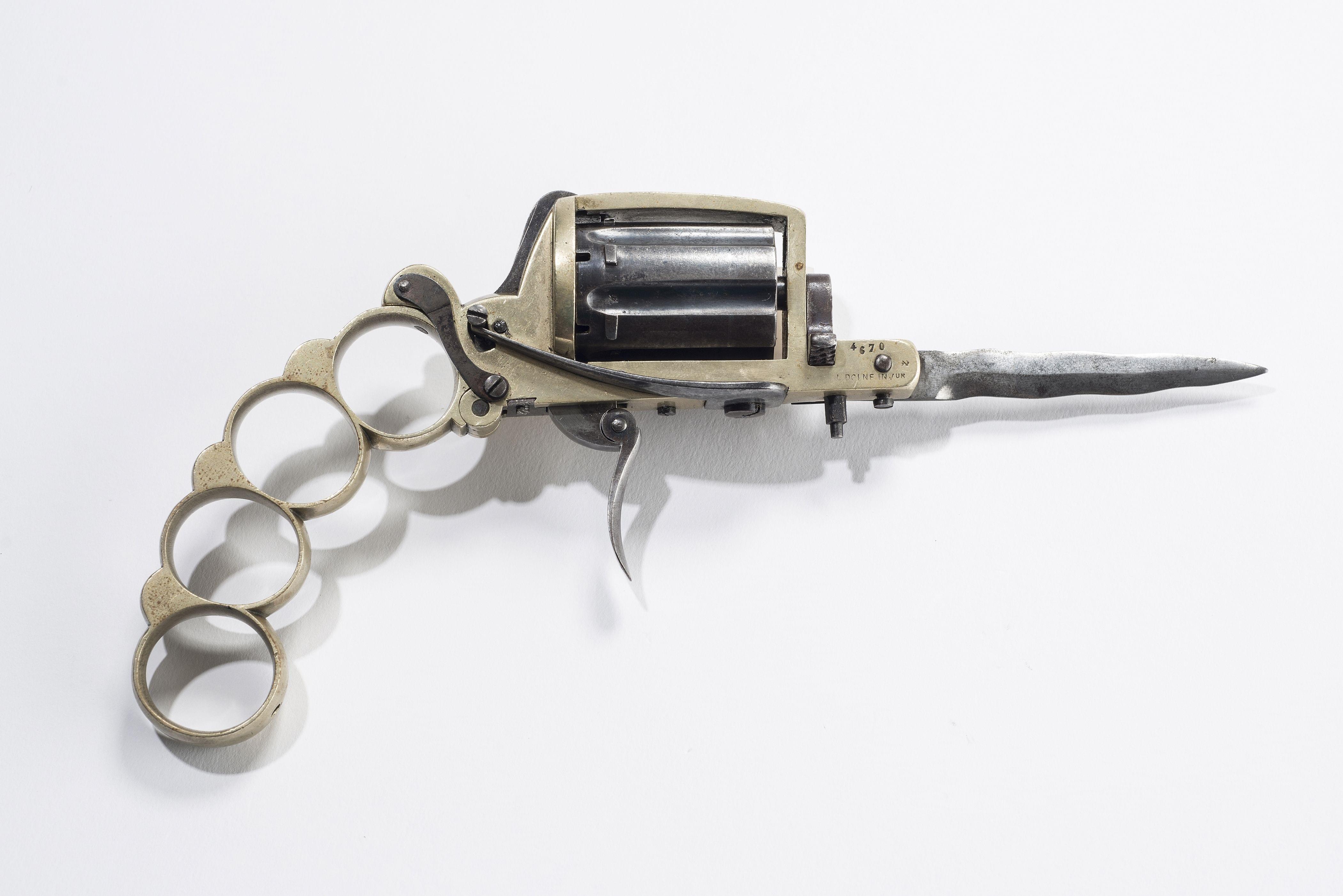 Calibre 7 mm, barillet à 6 chambres en acier, carcasse et crosse en laiton marqué "L.Dolne INVeur 4670", vers 1870, L 24 cm