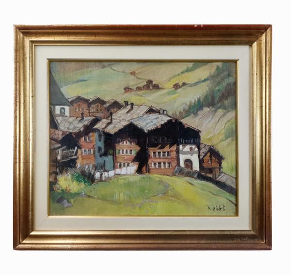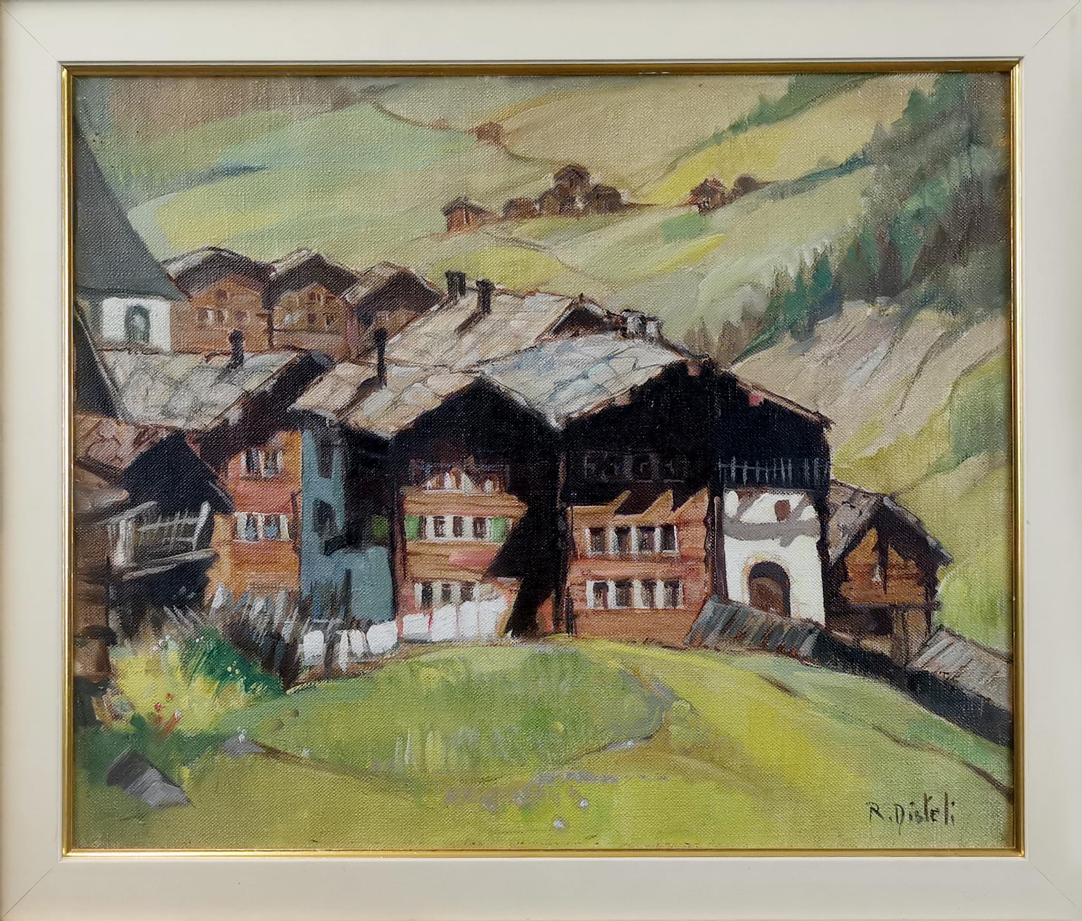 Vue de Zermatt, huile sur pavatex, signée, 36x44 cm