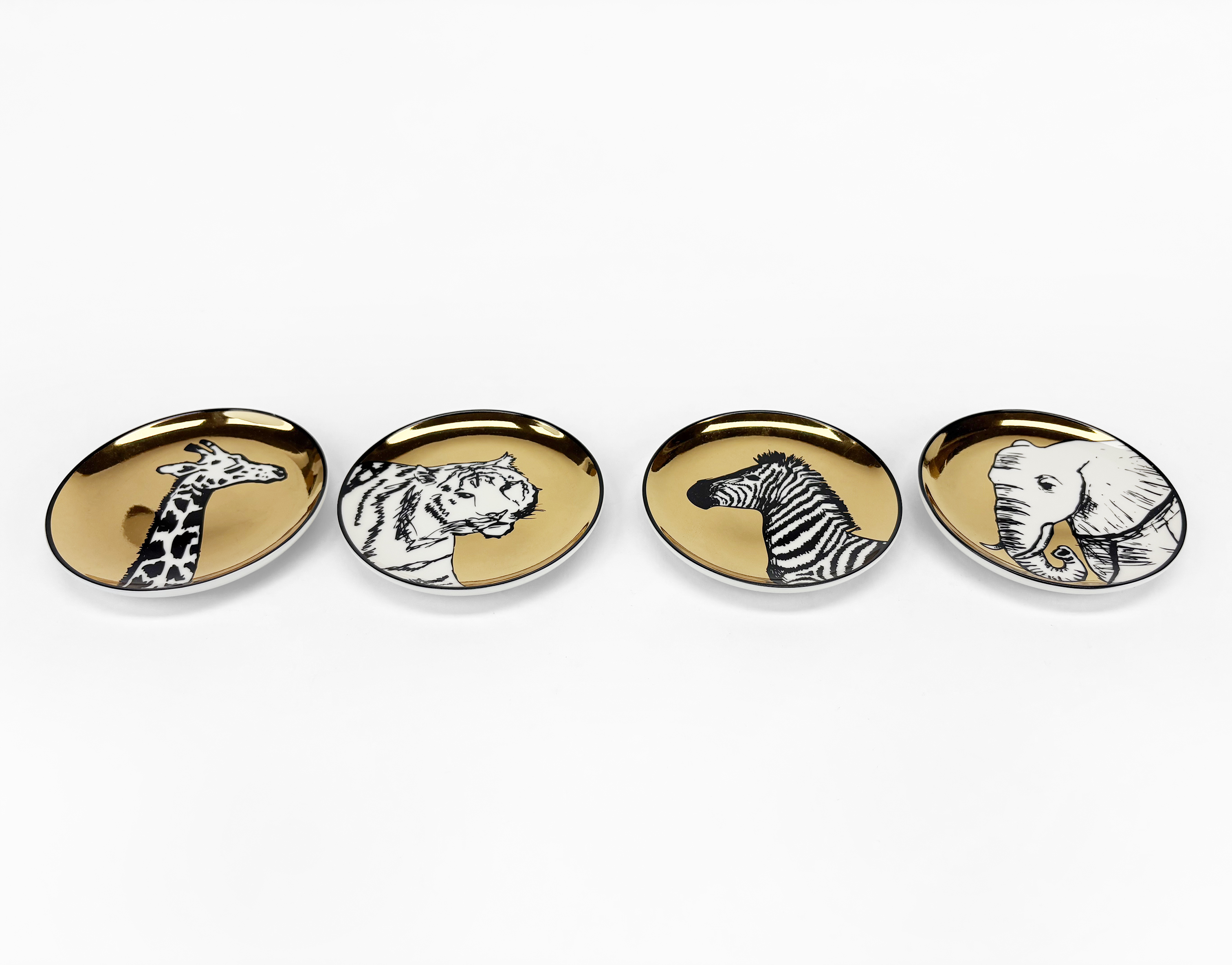 4 coupelles, porcelaine à décor d'animaux, D 10,5 cm