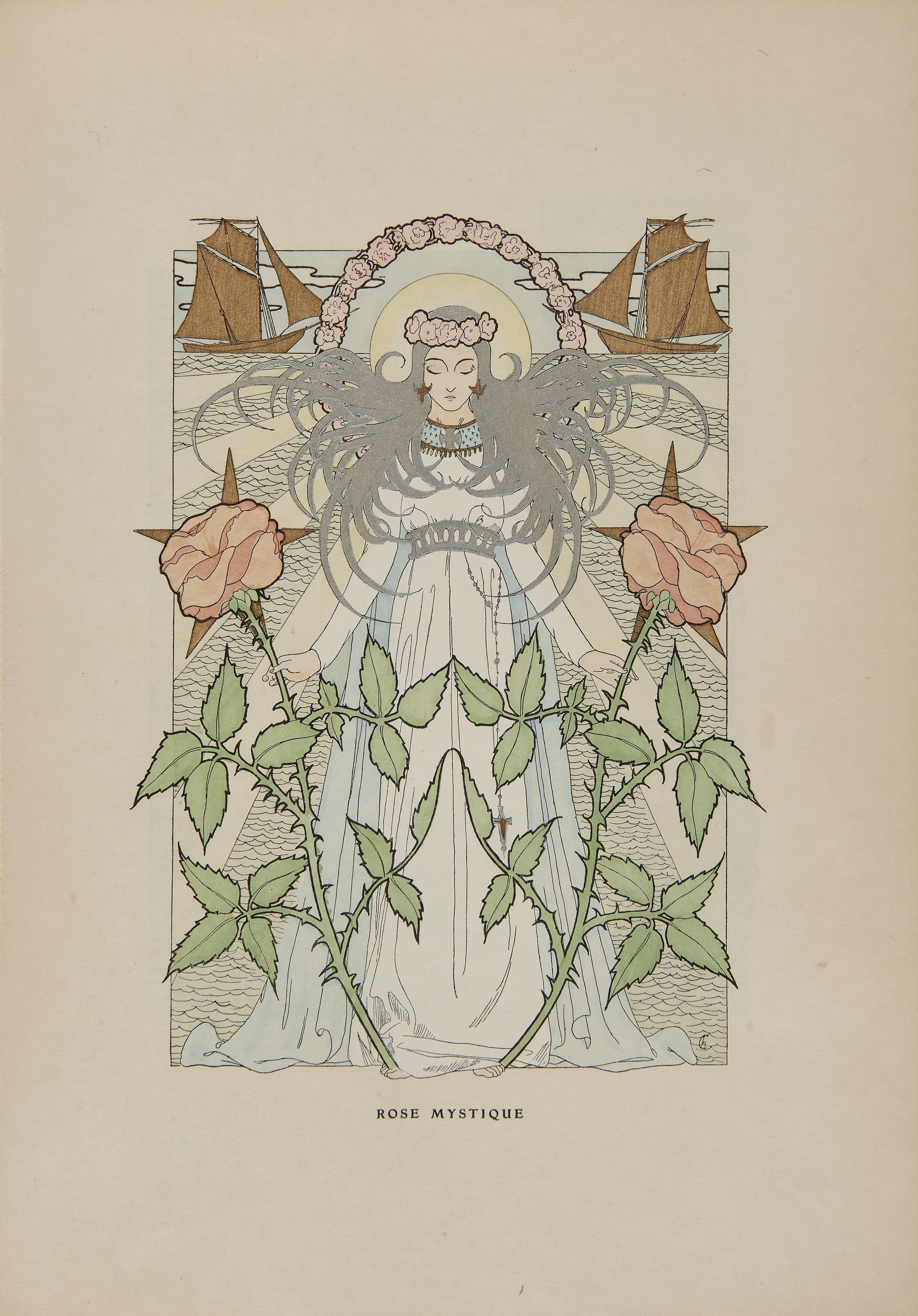 Fauconnier, crayons de couleur sur papier, signé, dédicacé et da...