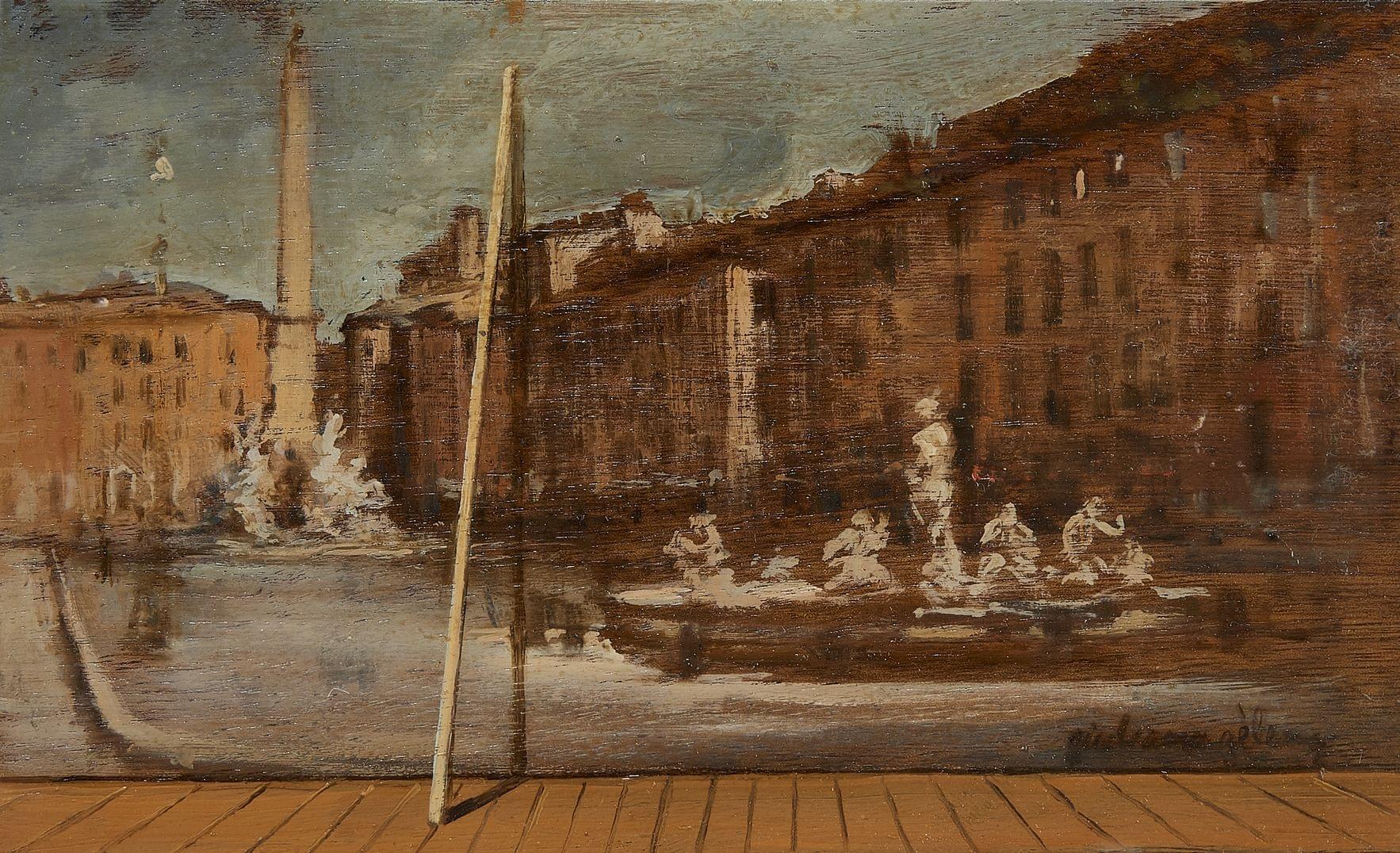 Vue de Rome, piazza Navona, huile sur panneau, signée, 12x19 cm