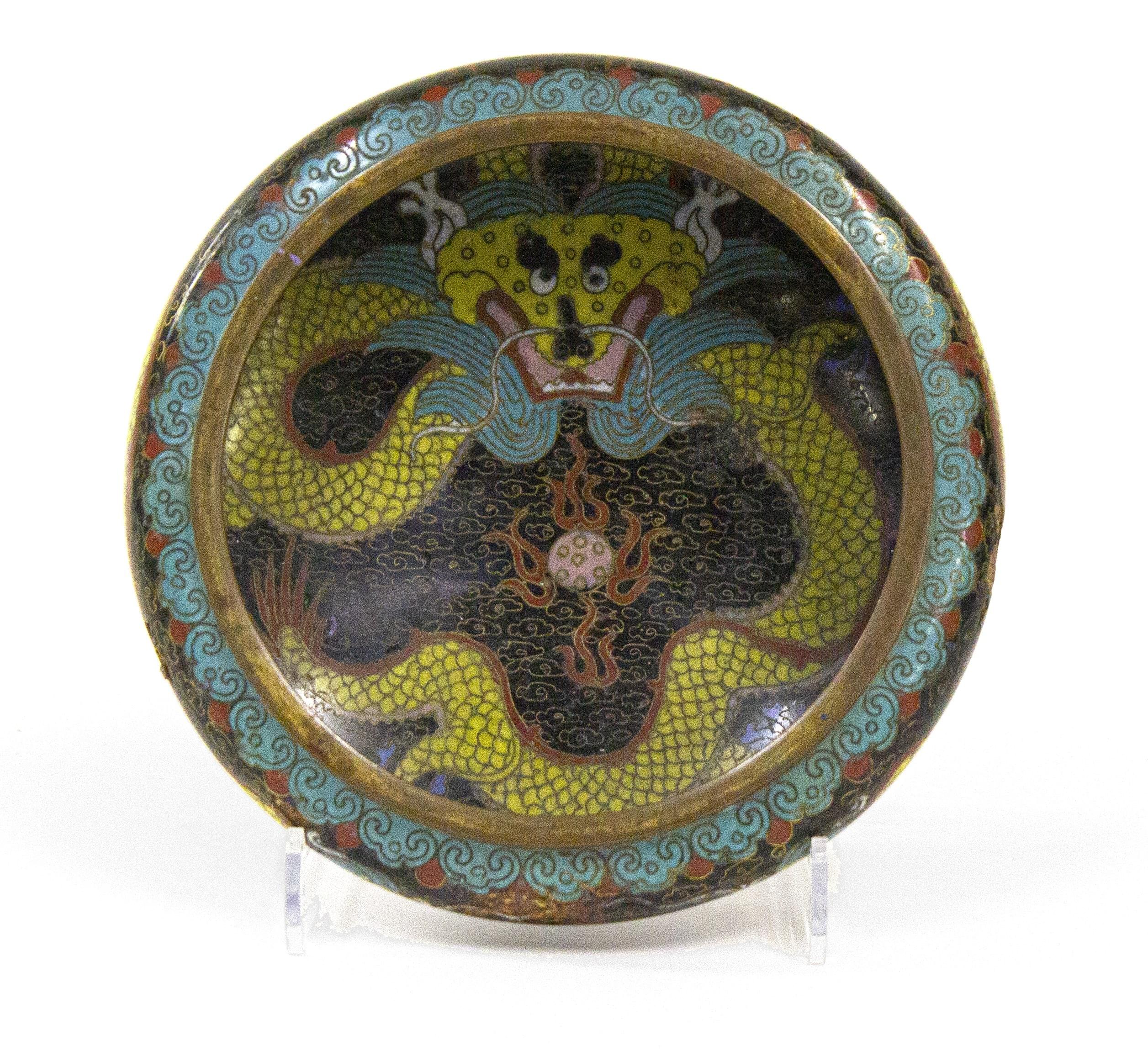 Cuivre et émaux polychromes à décor de dragon, D 15 cm