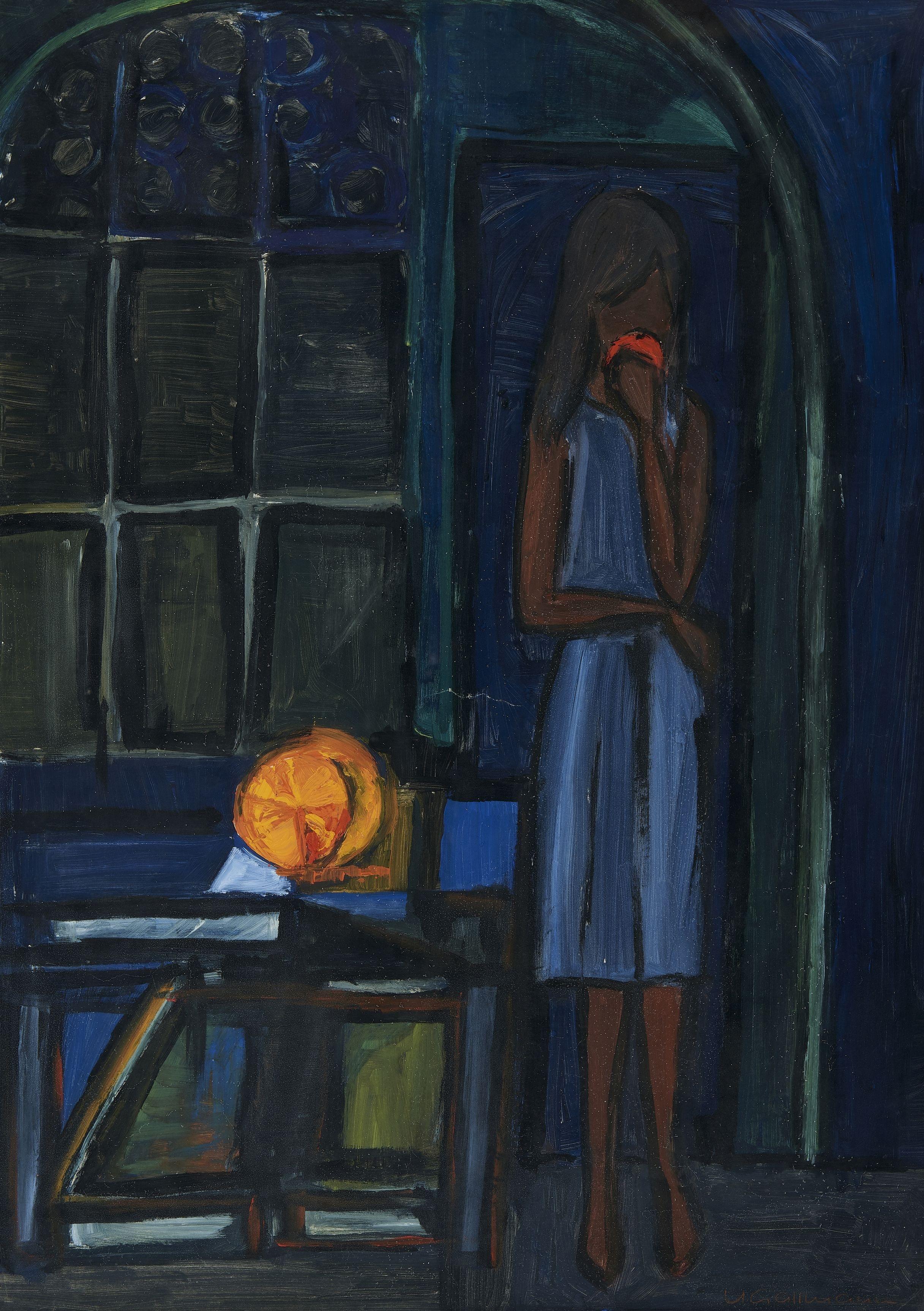 Jeune fille à l'orange, gouache sur papier, 68x48 cm