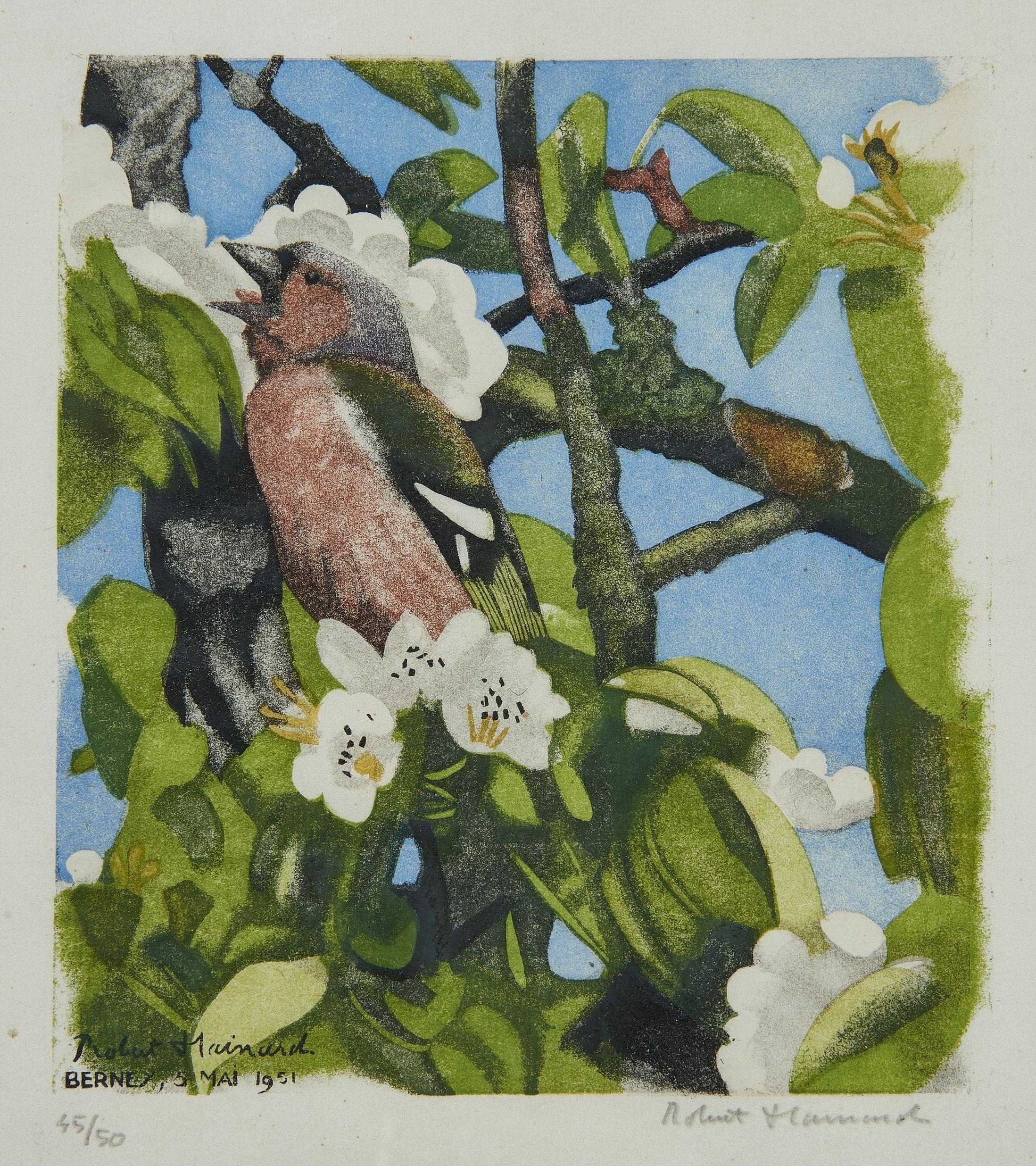 Pinson chantant, Bernex, 5 mai 1951, bois gravé, signé et numéroté 45/50, 16x14,5 cm