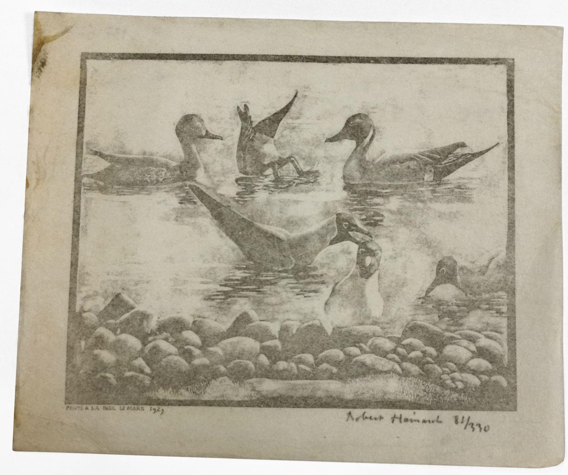 Oiseaux aquatiques, bois gravé, signé et numéroté 81/330, 10,5x13,5 cm