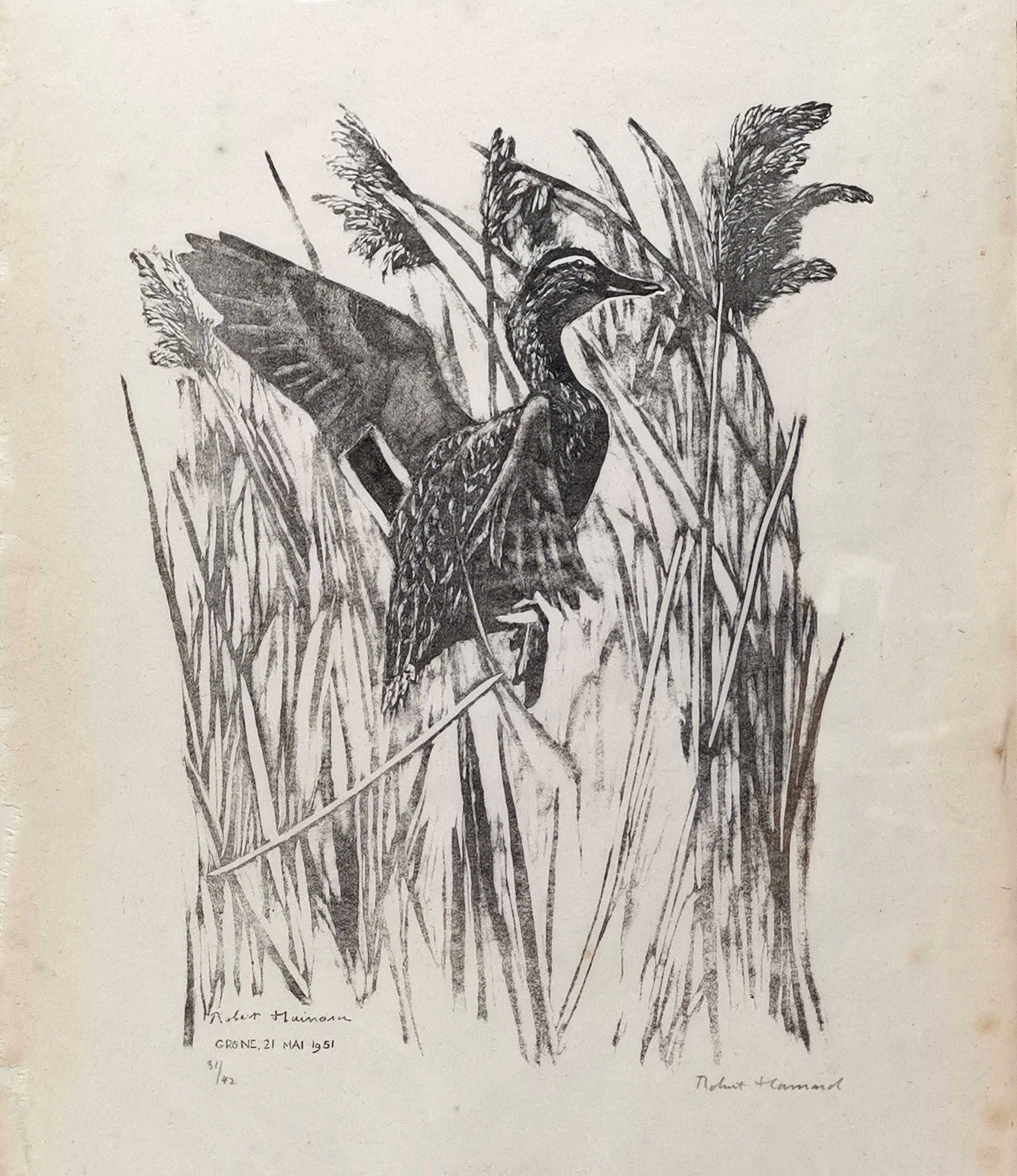 Cane s'envolant, 21.5.1951, Grône, bois gravé, signé et numéroté 31/42, 33,3x25,5 cm