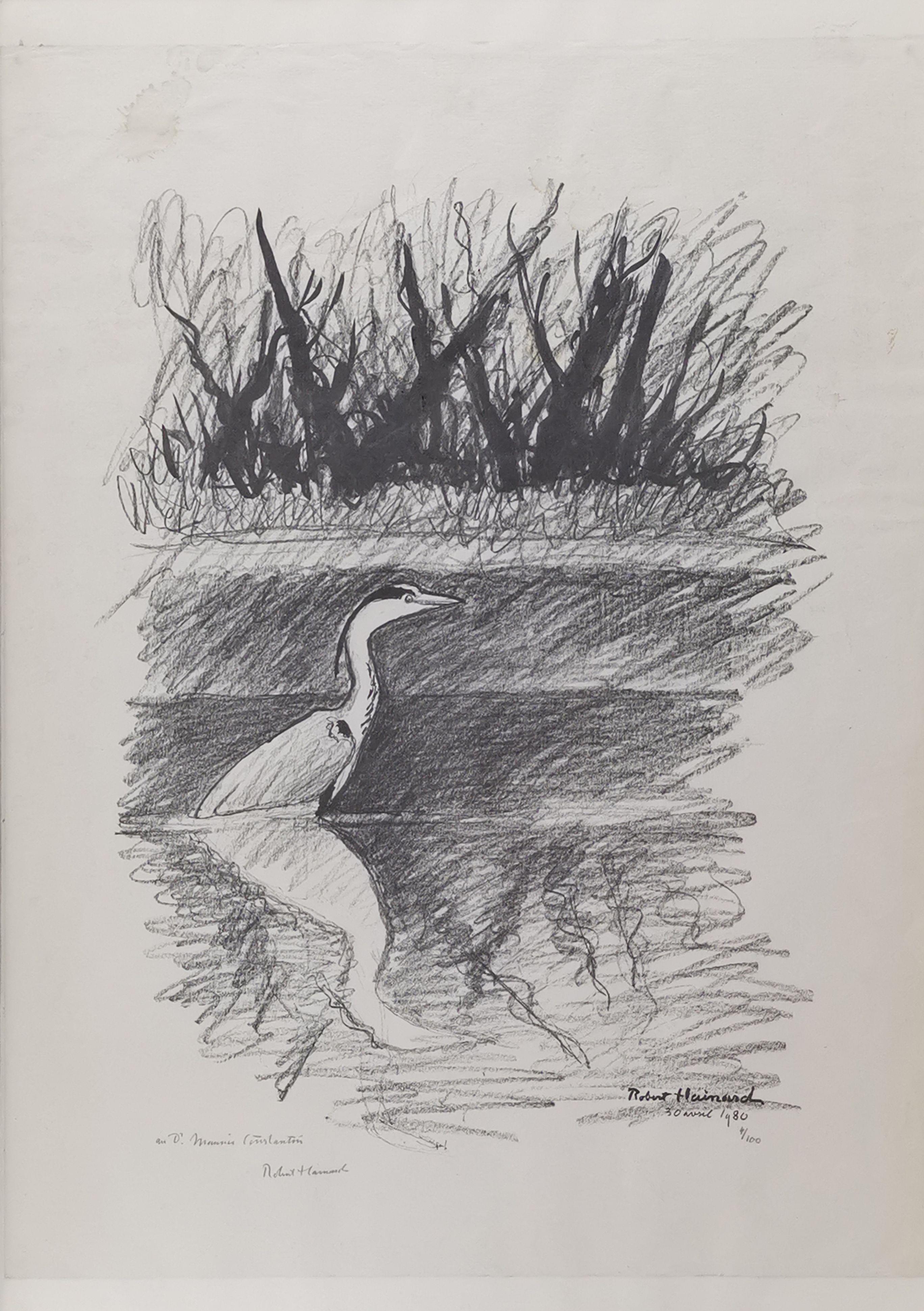 Héron cendré, 30 avril 1980, affiche, signée, dédicacée et numérotée 4/100, 63x48 cm
