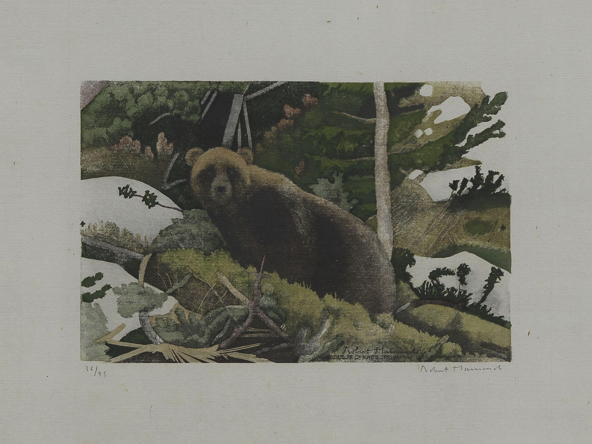 Ours, bois gravé, signé et numéroté 36/48, 15x20 cm