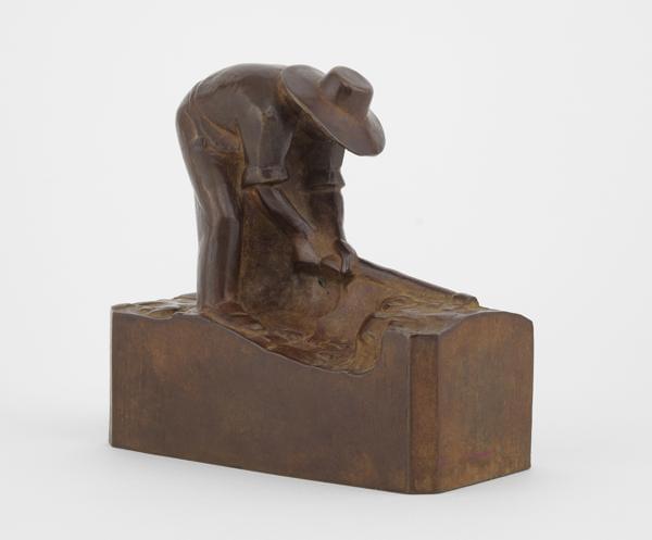 L'arracheur de pommes de terre, bronze à patine brune, numéroté 5/25, fondeur Venturi Arte, L 14 cm