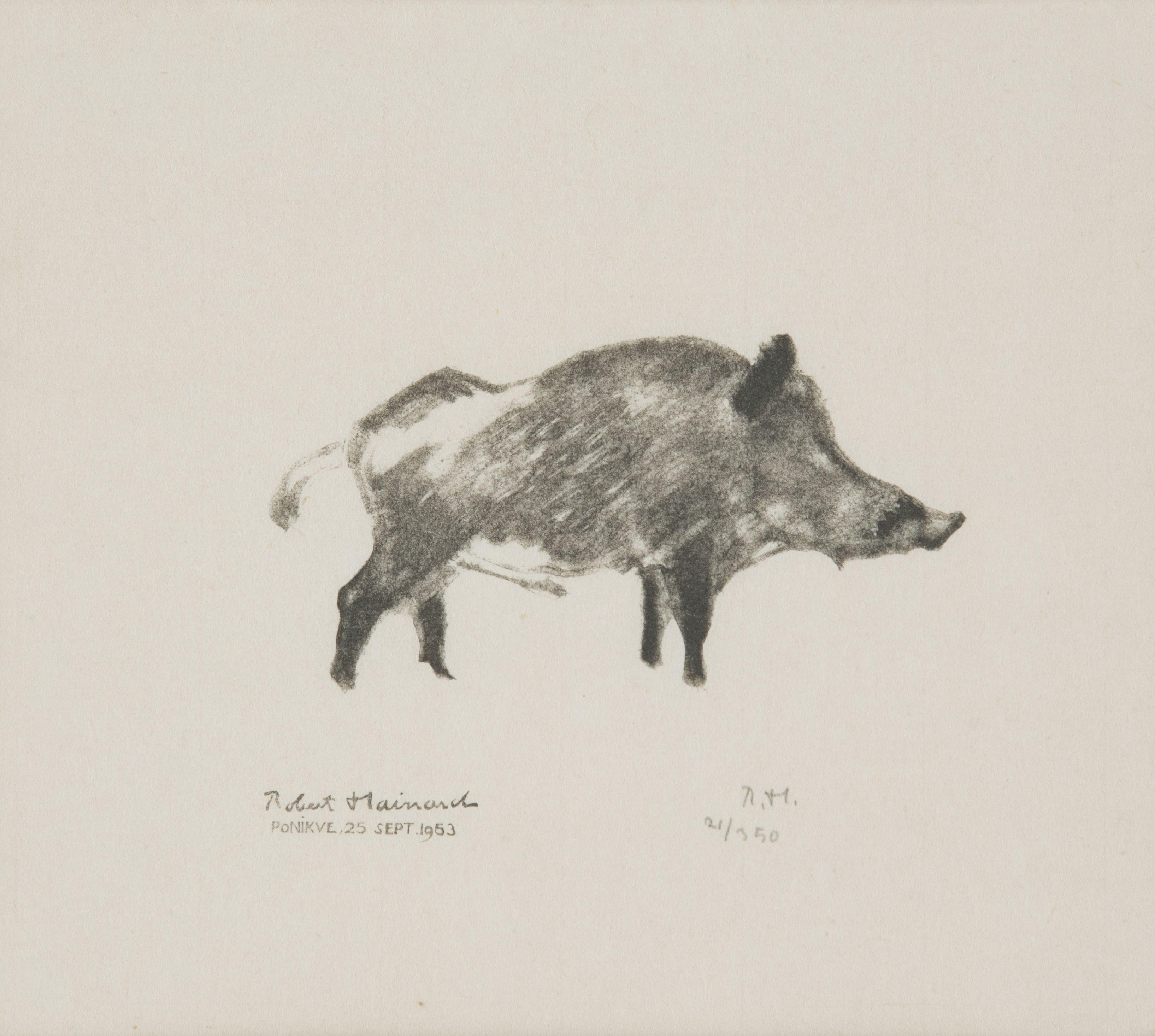 Lapin des neiges, gravure sur bois, signée et datée 1943, 28x39...