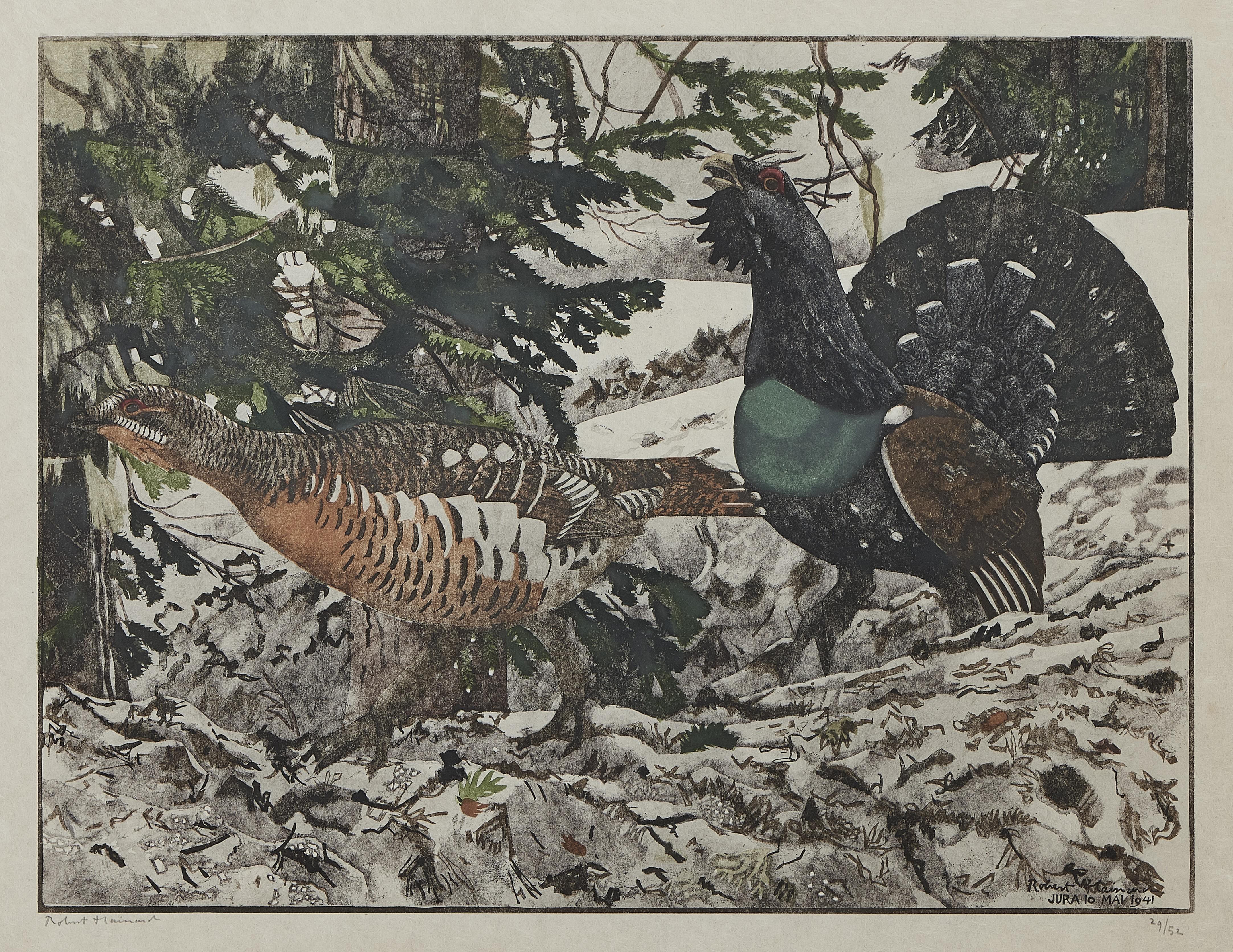 Faisans, Jura, 10 mai 1941, bois gravé, signé et numéroté 29/52, 44x53 cm