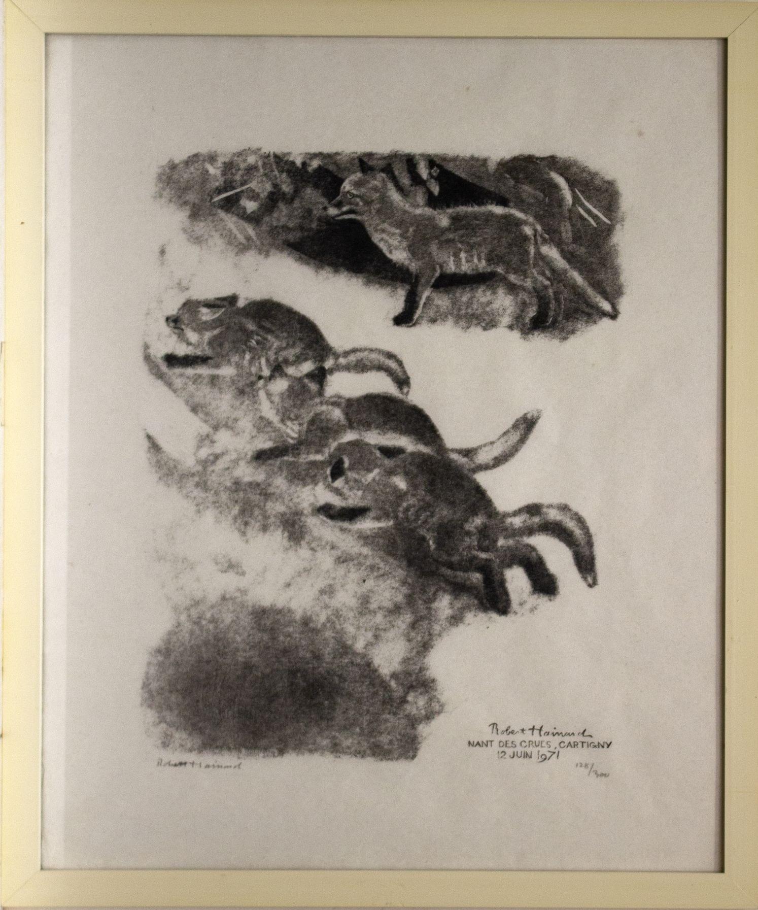 Les renards, Nants-des-Crues, Cartigny, bois gravé, signé et num...