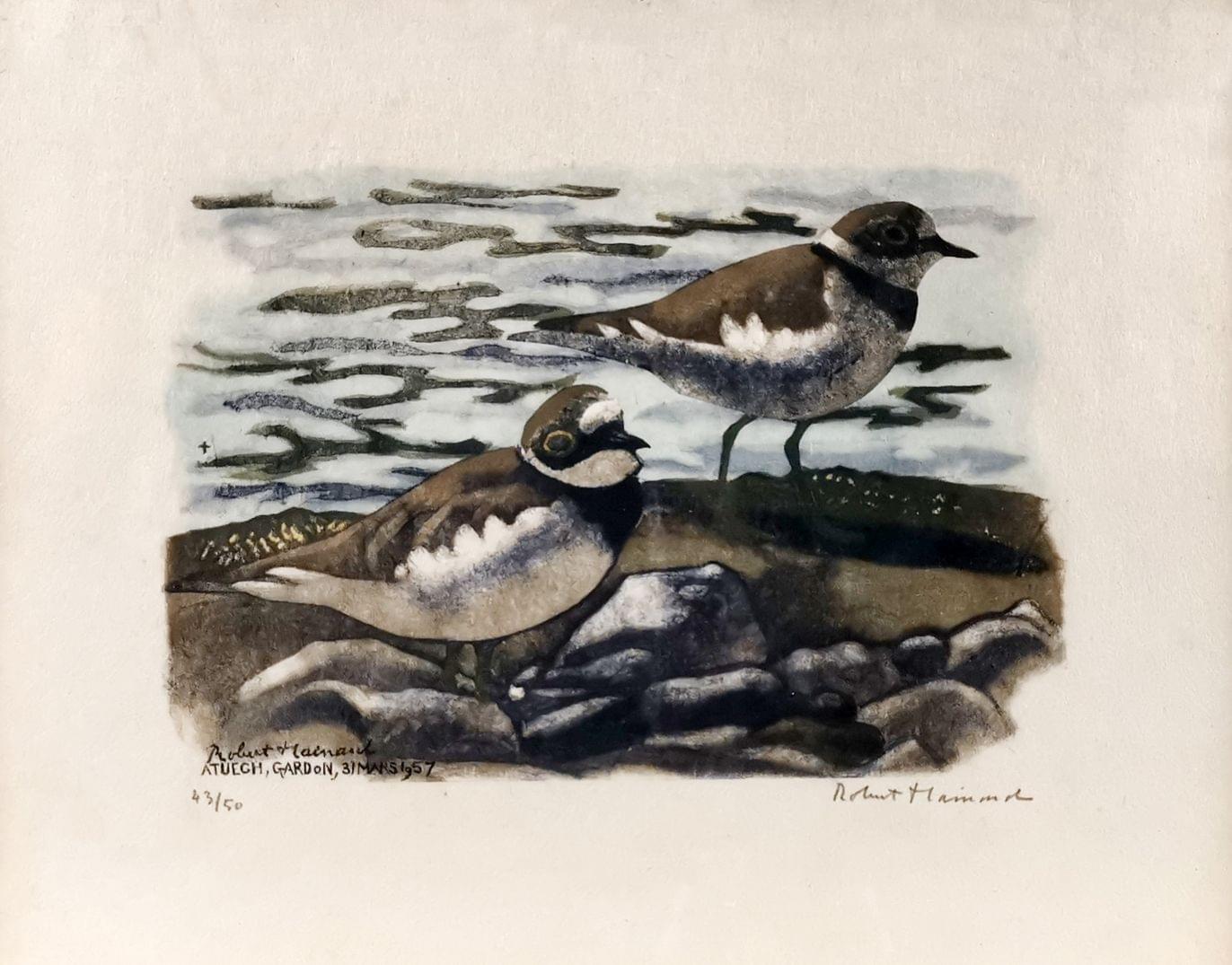 Couple de petits gravelots, Athuegh, gardons, 31 mars 1957, bois gravé, signé et numéroté 43/50, 15x21 cm