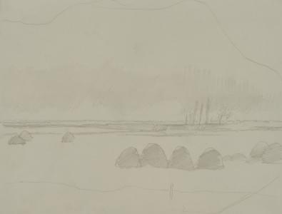 La plaine du Rhône, crayon gras sur papier, 34x44 cm. Provenance...