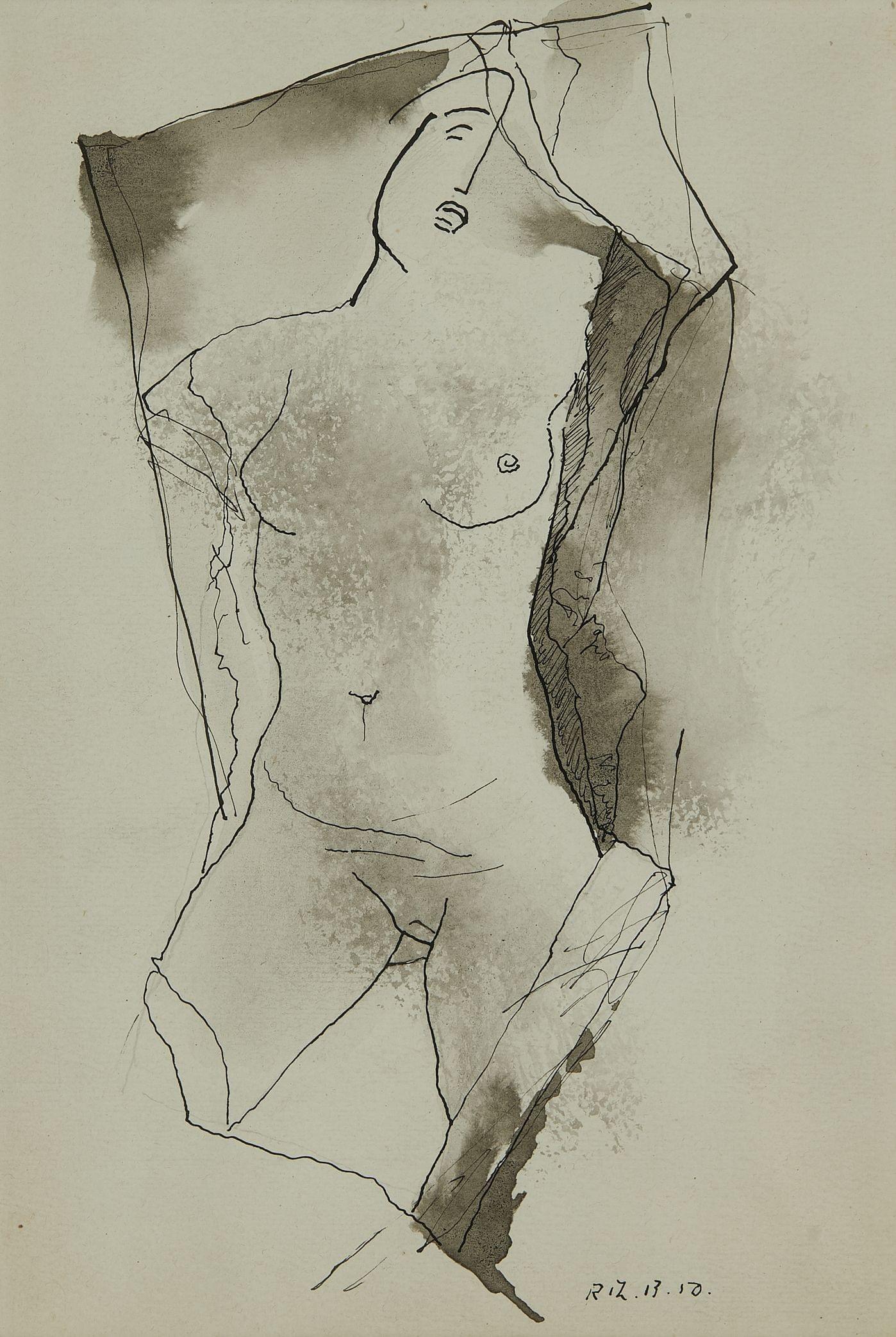 Nu, encre de Chine, signée et datée 1950, 26x18,5 cm.