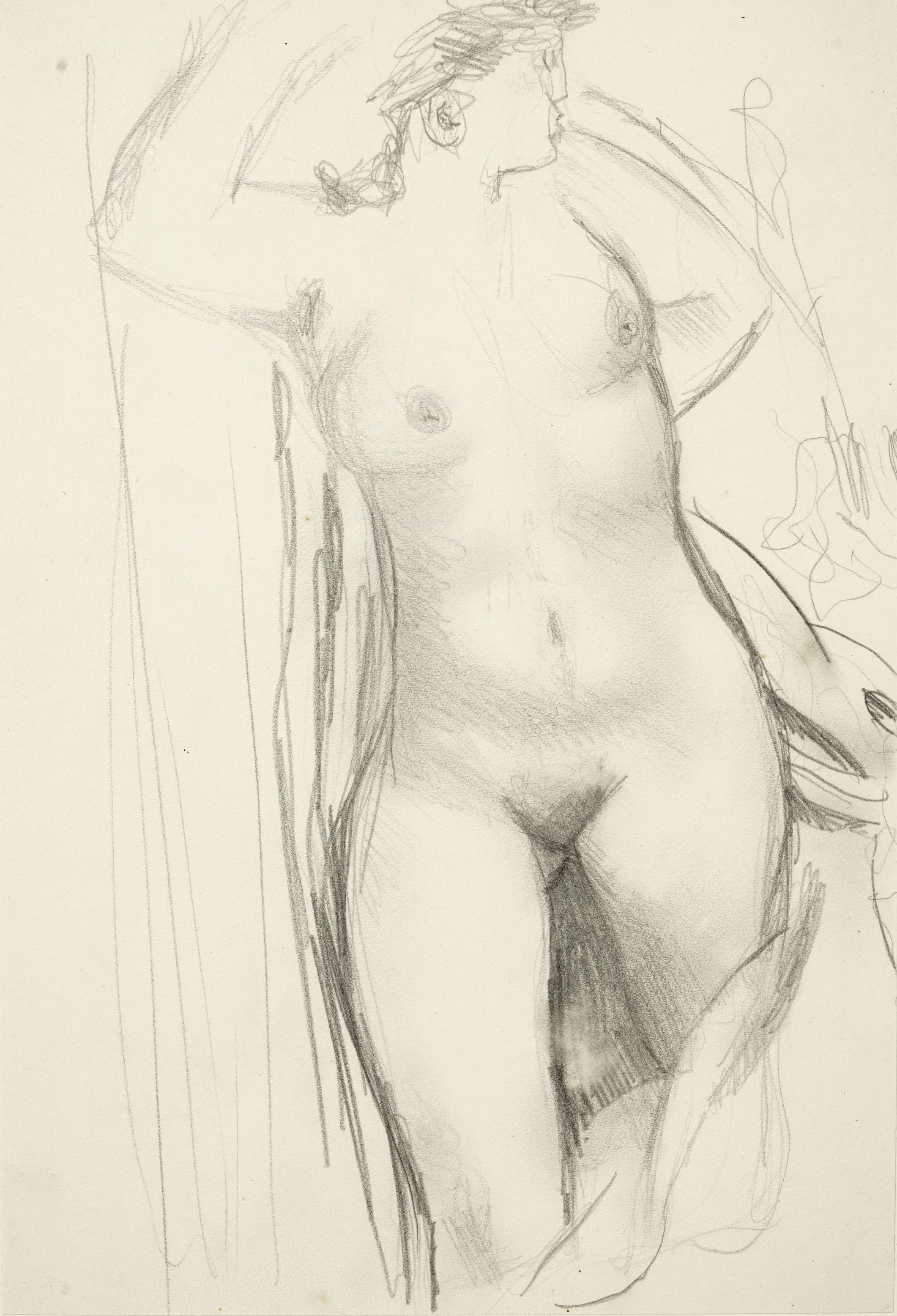 Nu, mine de plomb sur papier, cachet de l'atelier et signature au dos, 20x29 cm