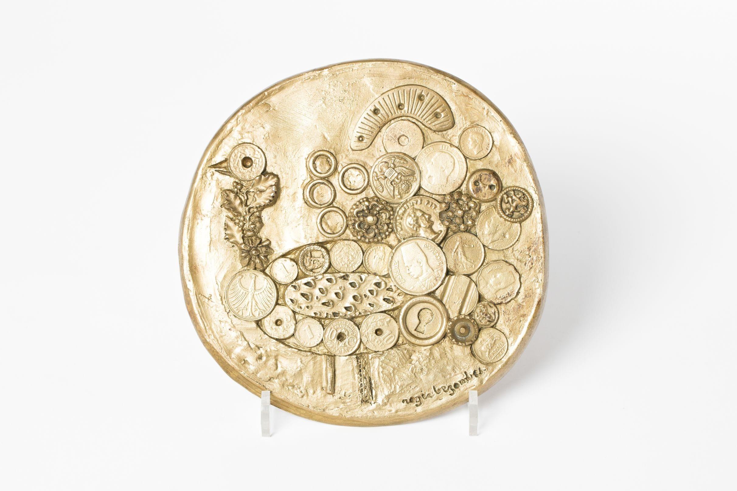 Mardi-gras, médaillon en bronze à patine dorée, D 23 cm. Bibliog...