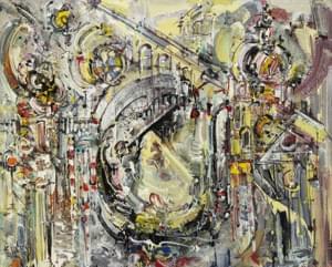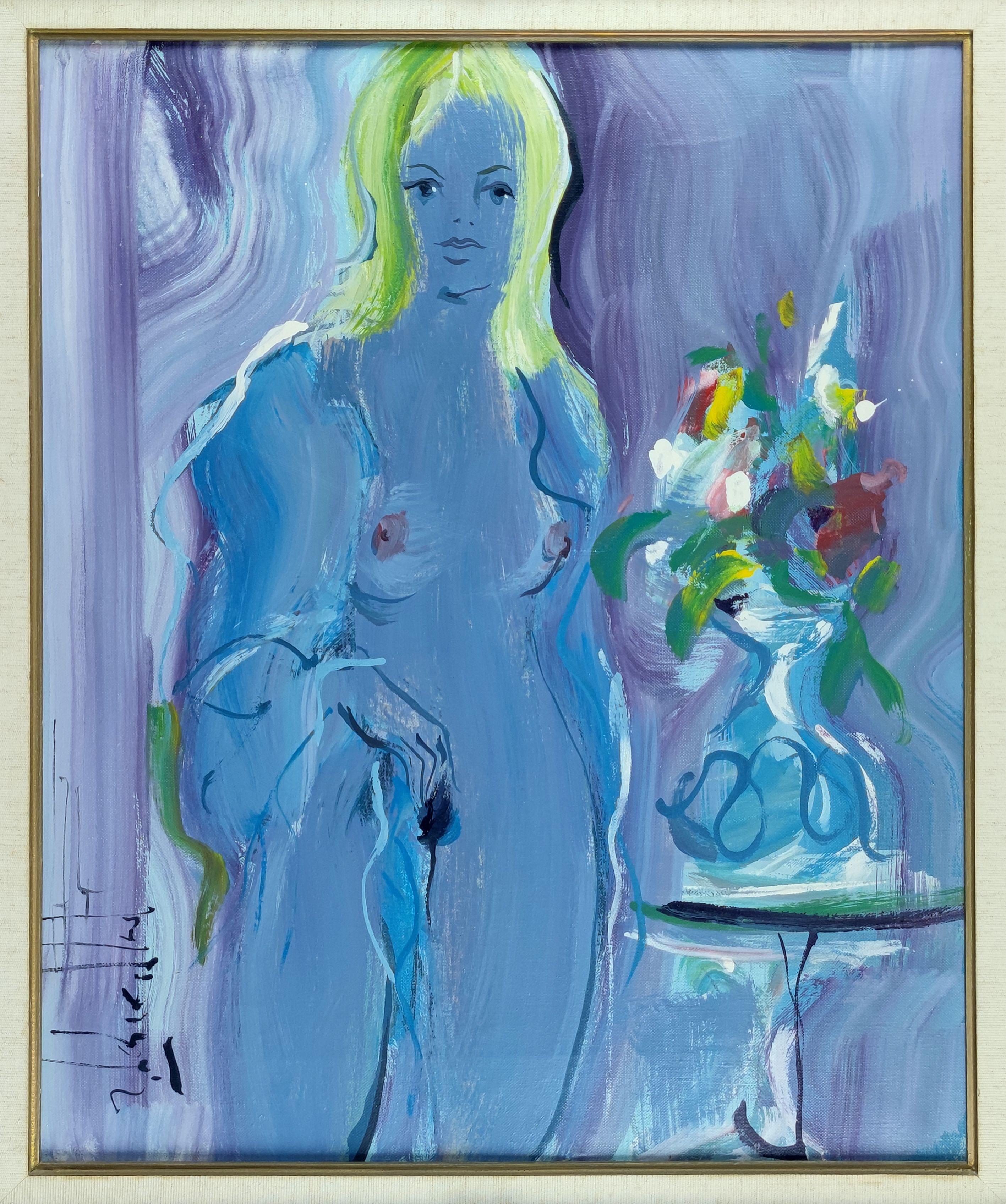 Jeune femme sur un sentier, huile sur toile, 61x50 cm