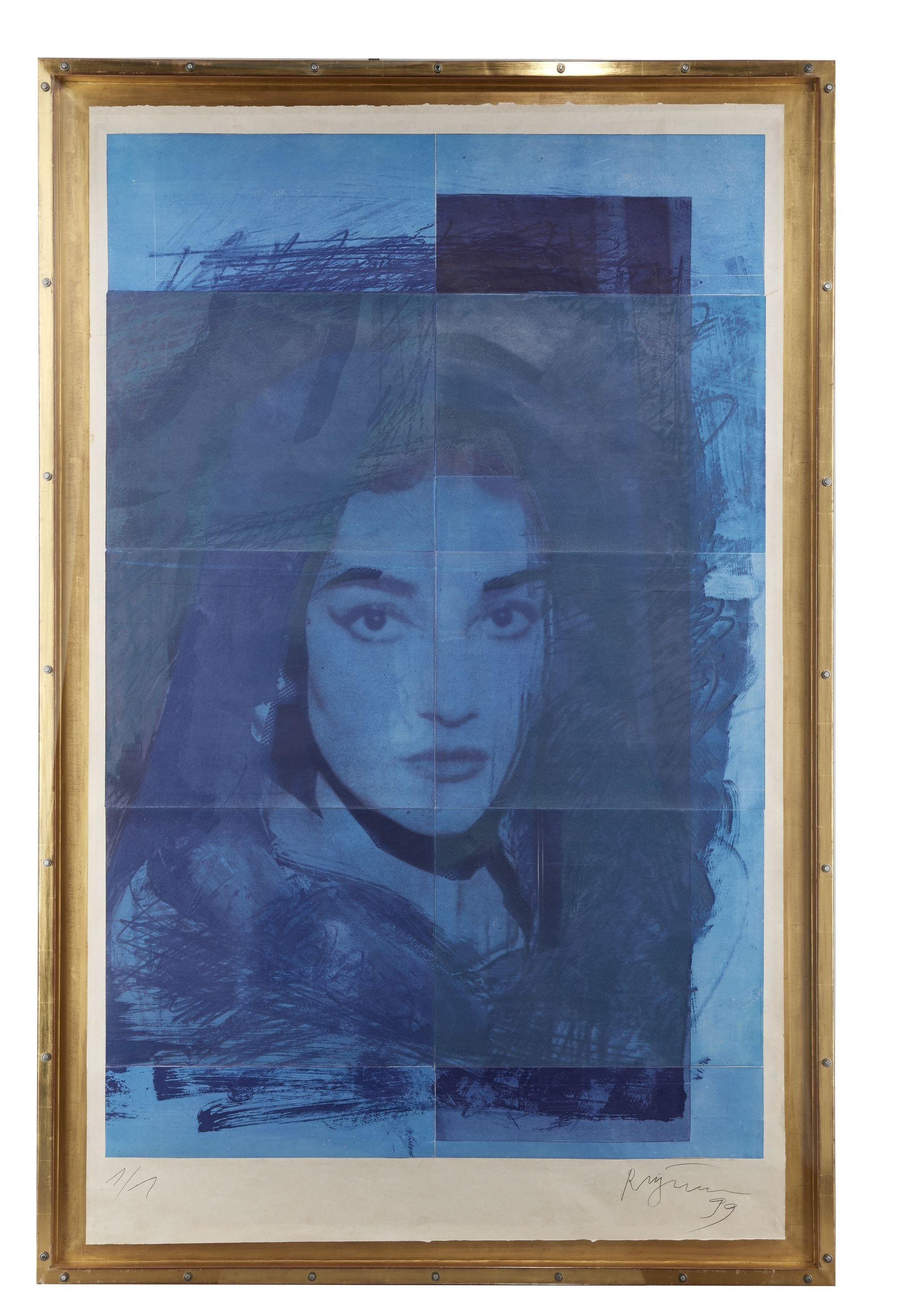 Visage sur fond rouge, une grande technique mixte sur papier, 19...