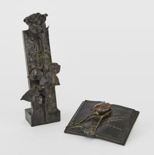 Deux presse-papier à décor d'une rose, bronze, numéroté 1/25, H...