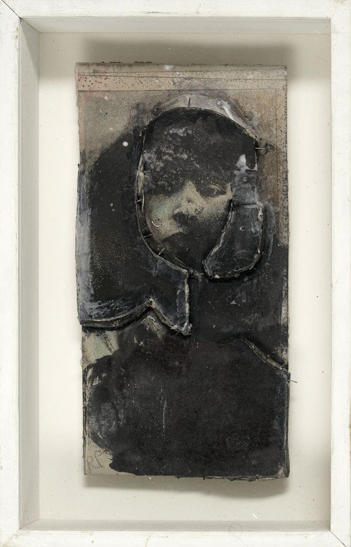 Technique mixte, oeuvre sous boîtier, monogrammée, 49x30 cm