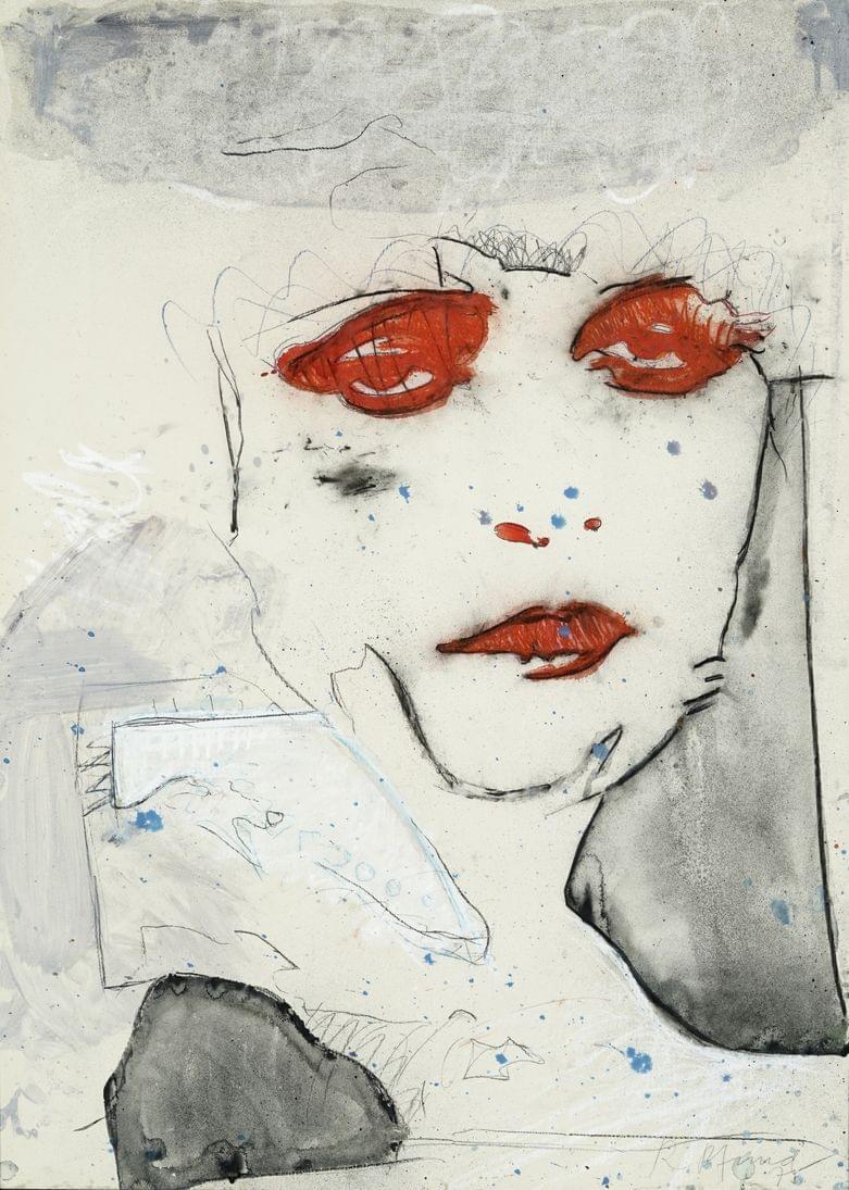 Techniques mixtes, huit oeuvres sous boîtier, monogrammées, 39x2...