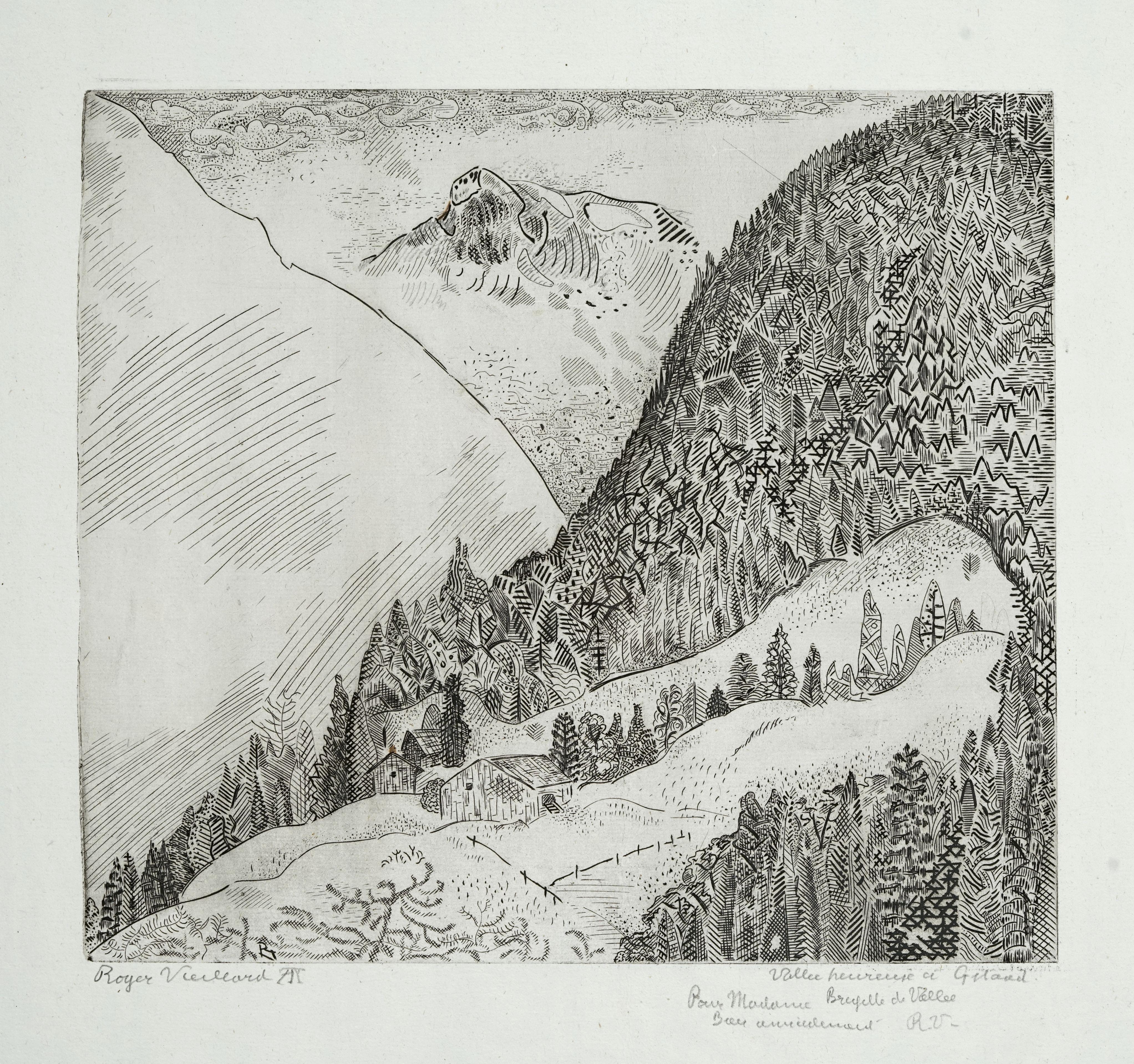 Vallée heureuse à Gstaad, gravure contresignée à la mine de plomb, 34x37 cm