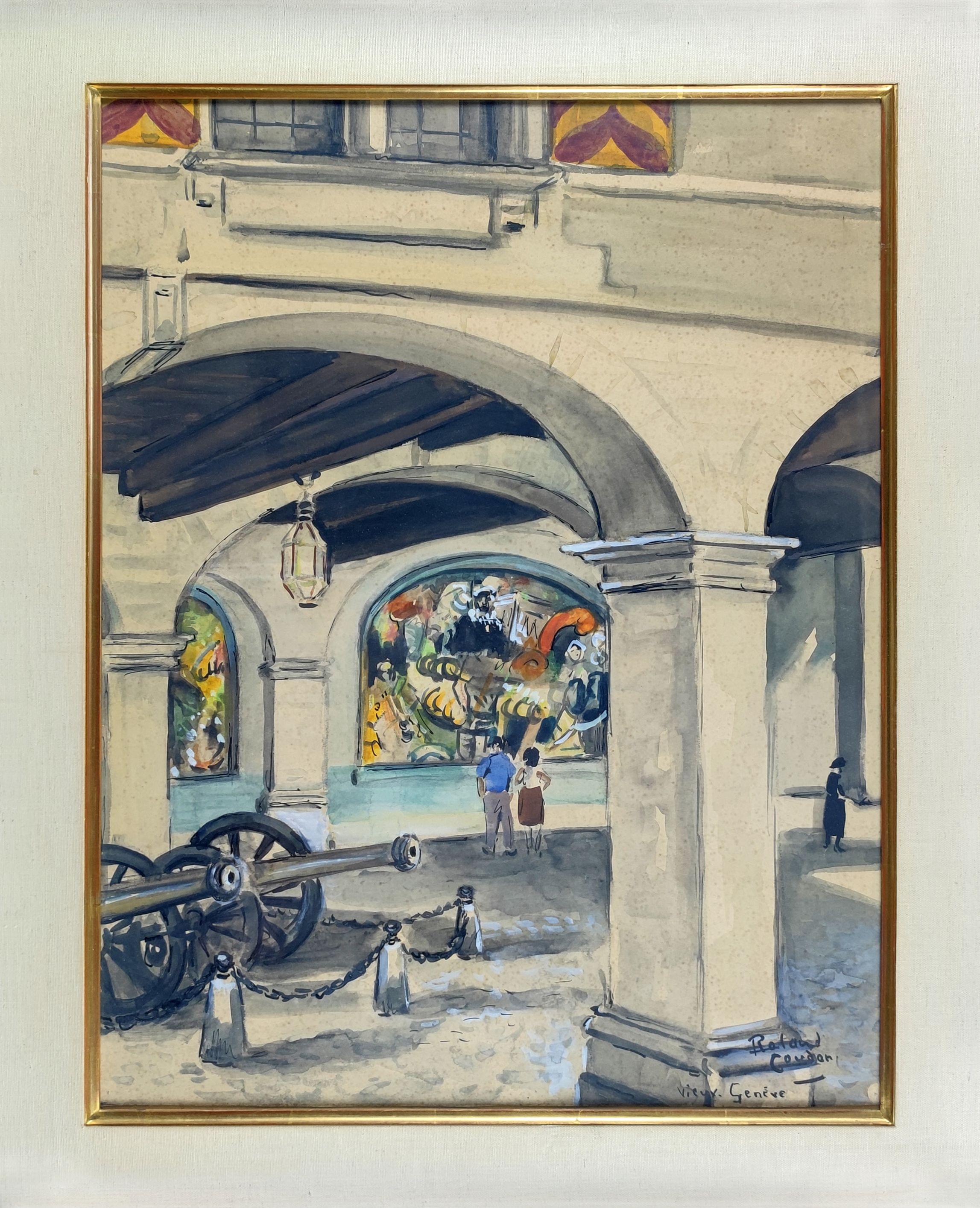 Les canons de l'ancien arsenal, aquarelle sur papier, signée, 59x44 cm.