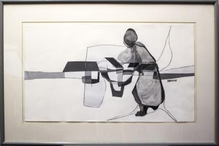 Femme et village en grisaille, aquarelle et gouache sur papier,...