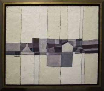 Village, huile sur toile, signée et datée 78, 57x66 cm