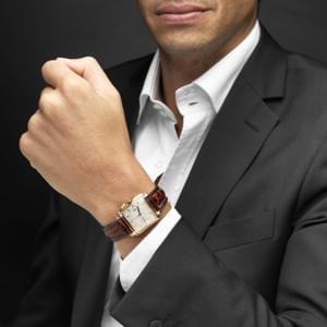 Cadran argent, aiguilles noires, or gris 750, 23x23 mm, L 15,5 c...