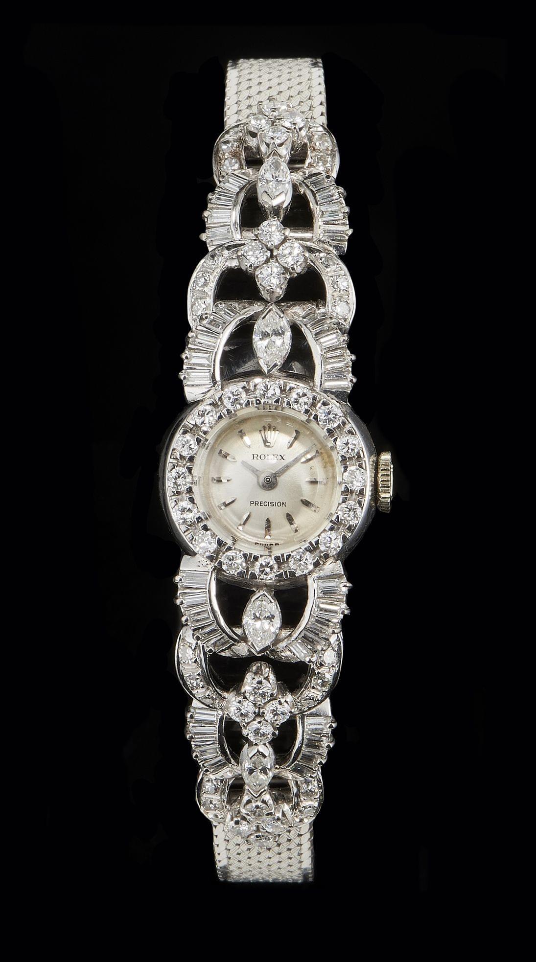 23. Jaeger, montre-bracelet ovale mécanique sertie de diamants taill...