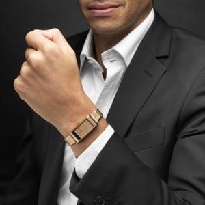 Cadran argent, aiguilles noires, or gris 750, 23x23 mm, L 15,5 c...