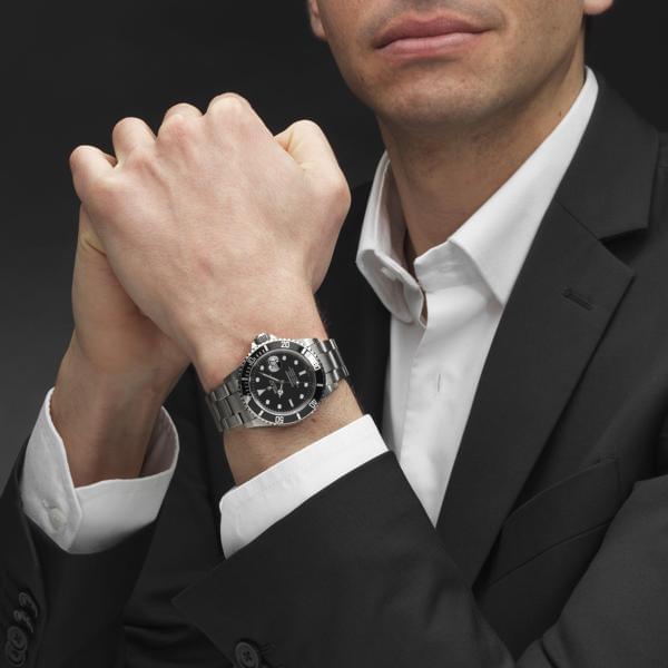 Cadran anthracite, aiguilles blanches, index bâtons argentés, da...
