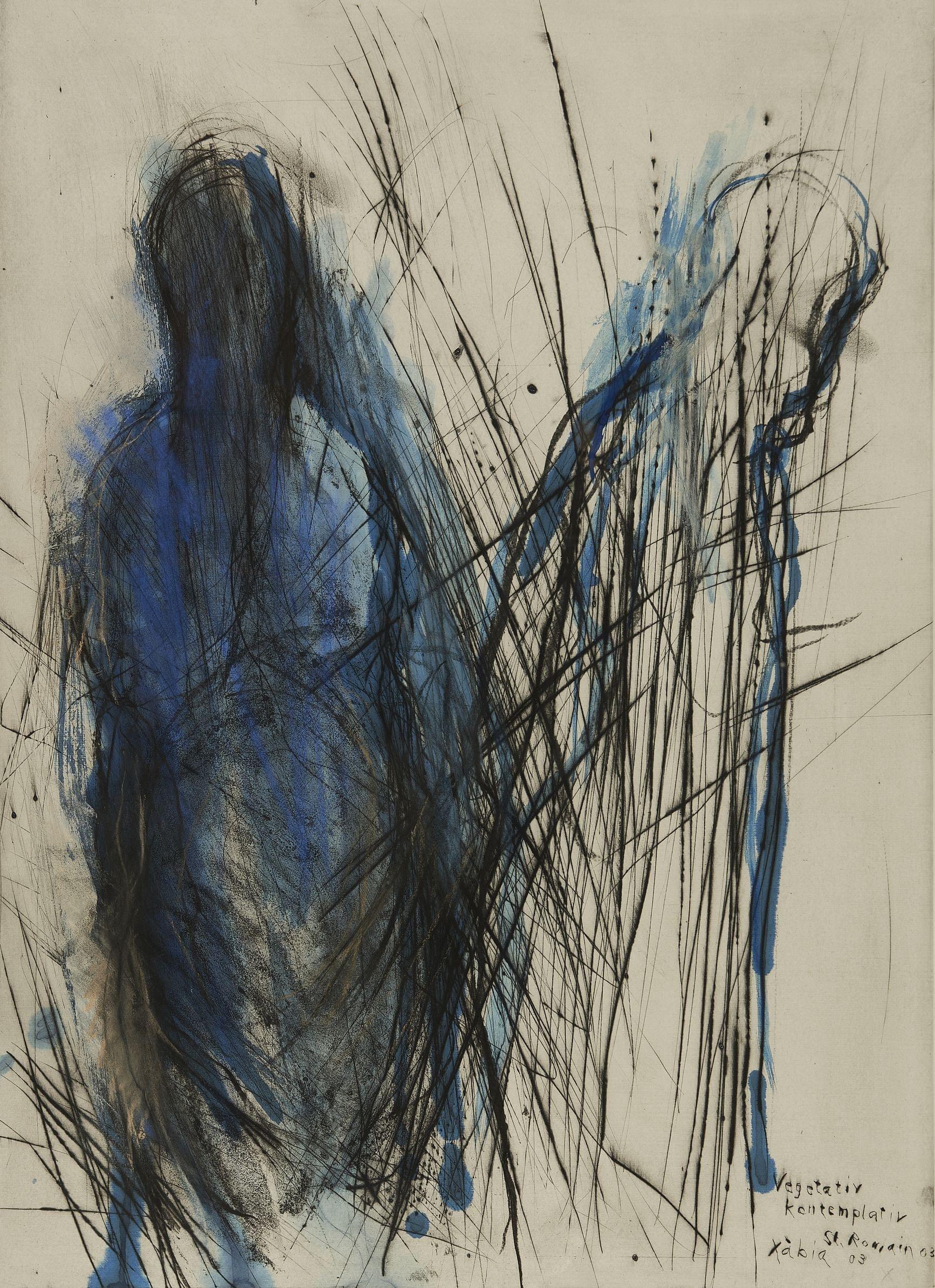 Wabenfrau, pointe sèche, fusain, terre et gouache, 100x70 cm. Pr...