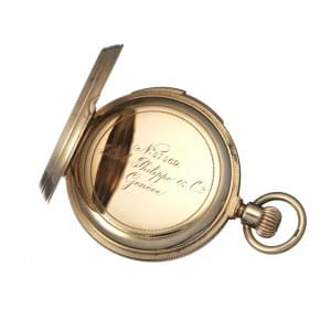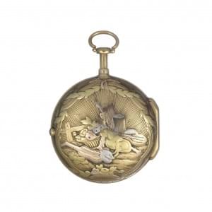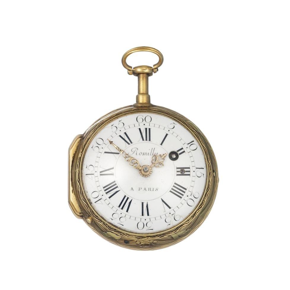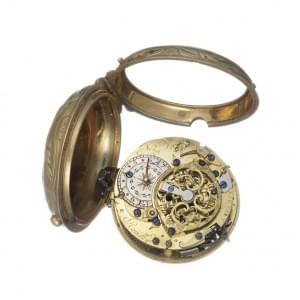 Cadran émaillé blanc, aiguilles dorées, index bleu, travail angl...
